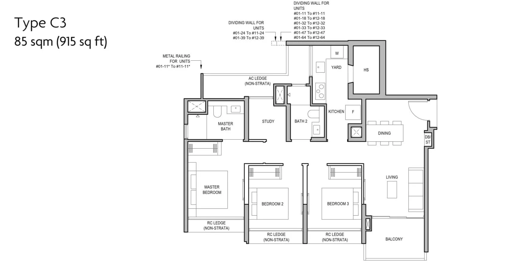 3 BEDROOM PREMIUM + STUDY